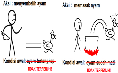 BPPTIK – Sebelum melakukan suatu aksi, harus dipastikan bahwa kondisi awal aksi tersebut terpenuhi. Bila kondisi awal suatu aksi tidak dipenuhi, maka: