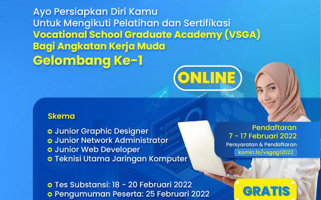 Dibuka, Pendaftaran Pelatihan dan Sertifikasi Vocational School Graduate Academy (VSGA) BPPTIK Online Tahun 2022 Gelombang ke-1