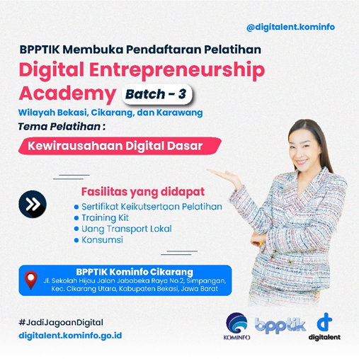 Dibuka, Pendaftaran Pelatihan Digital Entrepreneurship Academy (DEA) Tema Kewirausahaan Digital Dasar Batch 3 secara Offline Tahun 2023
