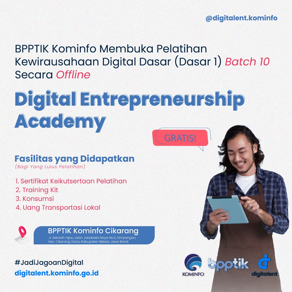 Dibuka, Pendaftaran Pelatihan Digital Entrepreneurship Academy (DEA) tema Kewirausahaan Digital Dasar (KDD) secara Offline Batch 10 Tahun 2023