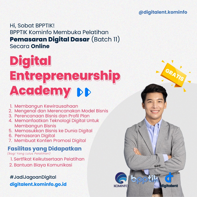 Dibuka, Pendaftaran Pelatihan Digital Entrepreneurship Academy (DEA) Tema Pemasaran Digital Dasar (PDD) Secara Online Batch 11 Tahun 2023