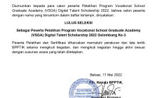 HASIL SELEKSI CALON PESERTA PELATIHAN PROGRAM VOCATIONAL SCHOOL GRADUATE ACADEMY (VSGA) DIGITAL TALENT SCHOLARSHIP 2022 GELOMBANG KE-3 SECARA ONLINE