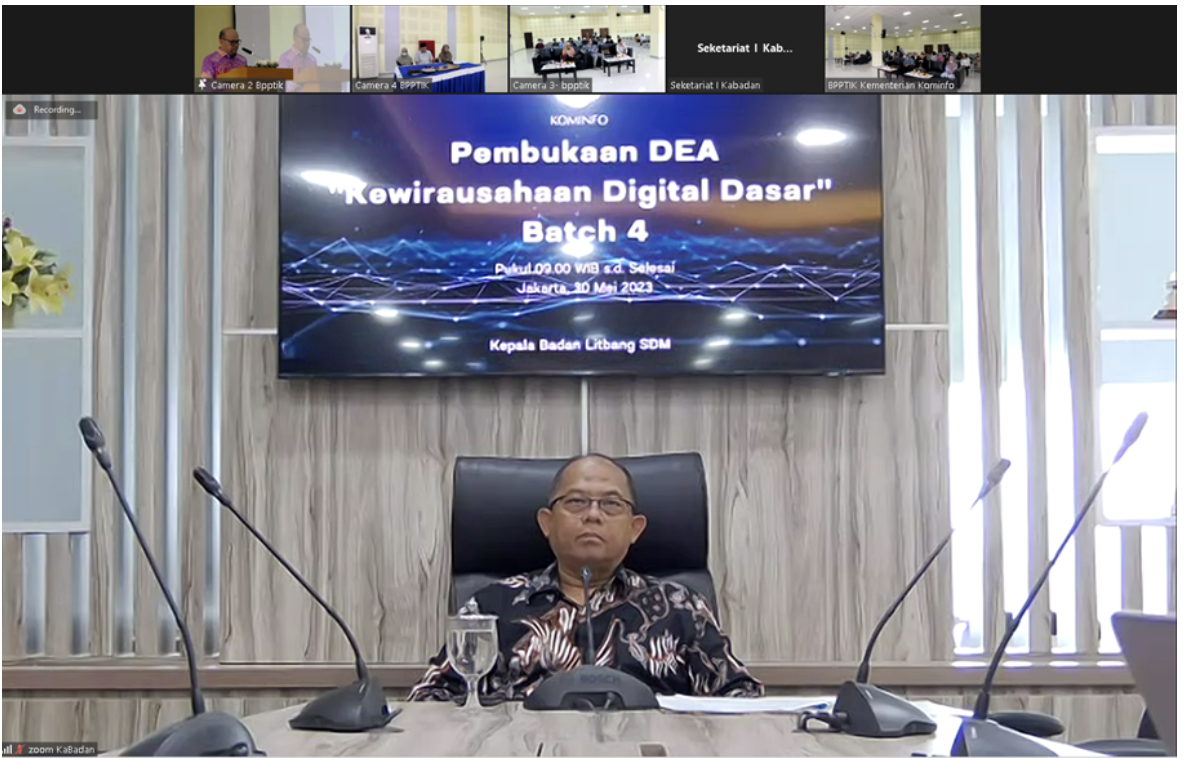 BPPTIK – The Office of Information and Communication Technology Training and Research (BPPTIK) is conducting Batch 4 of Digital Entrepreneurship Academy (DEA) training themed Basic Digital Entrepreneurship (Kewirausahaan Digital Dasar - KDD) Batch 4. The training is done offline and has been carried out on 30 – 31 May 2023, which will be followed by mentoring sessions on 5 – 16 June 2023. The opening ceremony was carried out on Tuesday, May 30 2023.